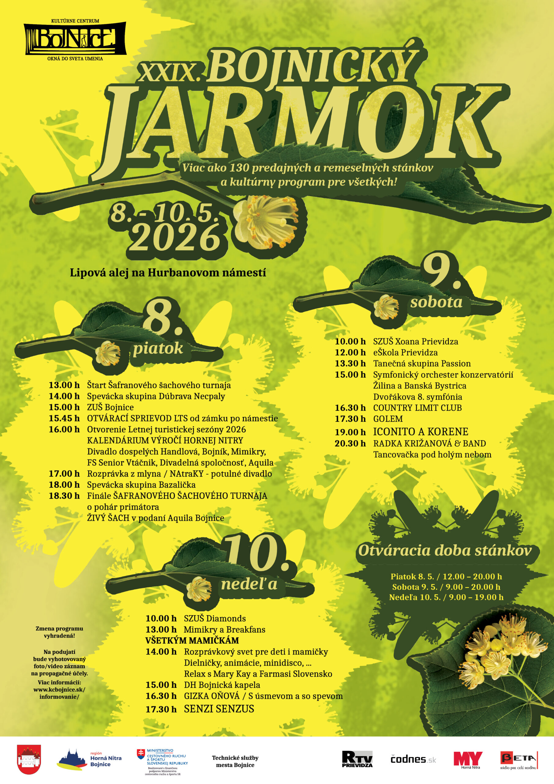 piatok 8. mája – sobota 9. mája – nedeľa 10. mája / lipová alej na Hurbanovom námestí, Bojnice